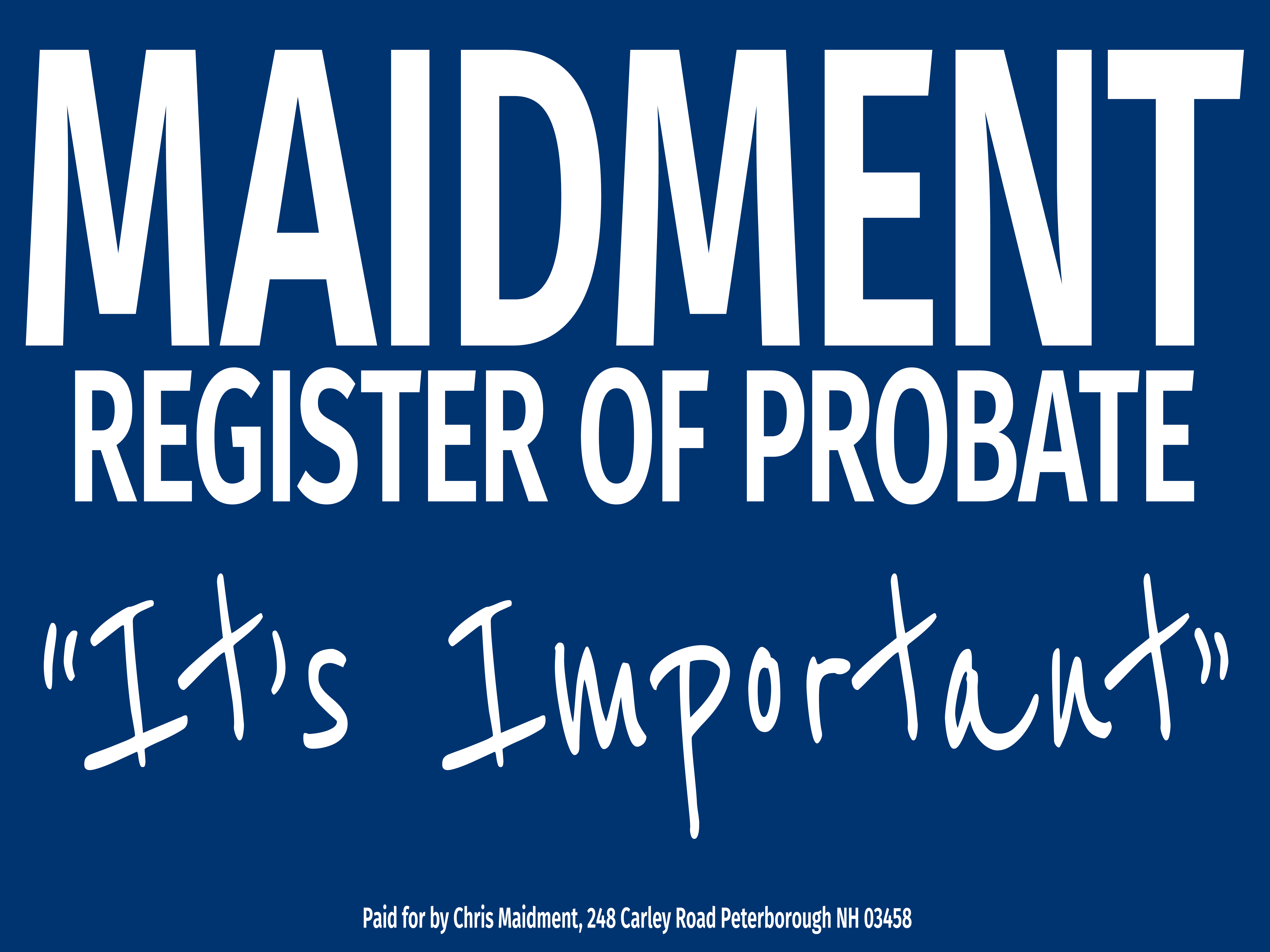 The Register of Probate is a constitutional office with no current duties, a result of the 2011 court consolidation. Maidment supports the bipartisan effort (CACR 13) to let voters decide whether to formally remove this vestigial office from the NH Constitution in November 2026.